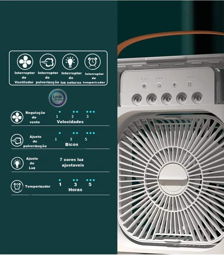 Sinta o poder do vento gelado combinado com uma névoa suave que transforma qualquer ambiente num oásis de conforto — mesmo nos dias mais quentes do verão!